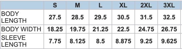 - Sizes Small – 3XL