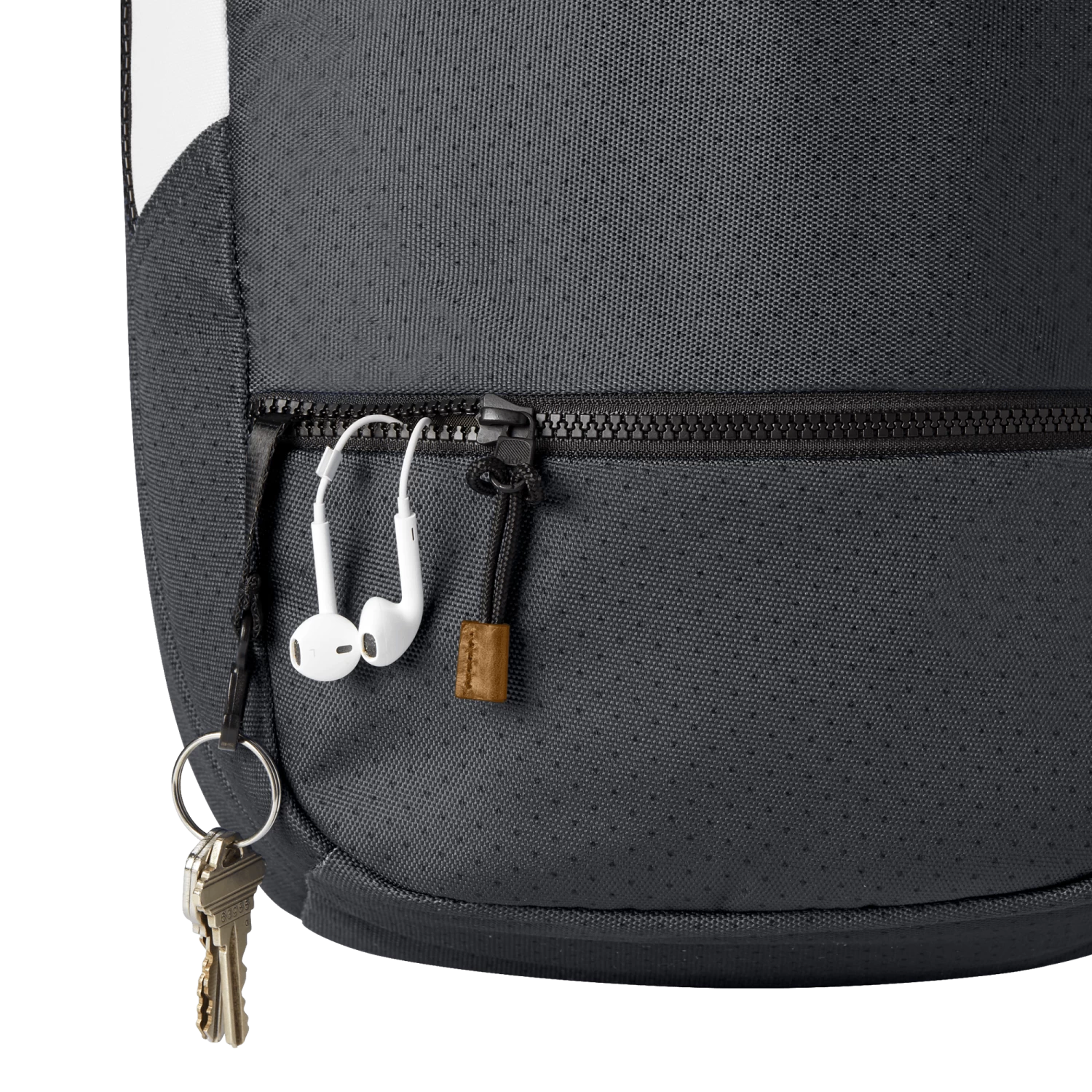 - Small accessory pocket with key leash